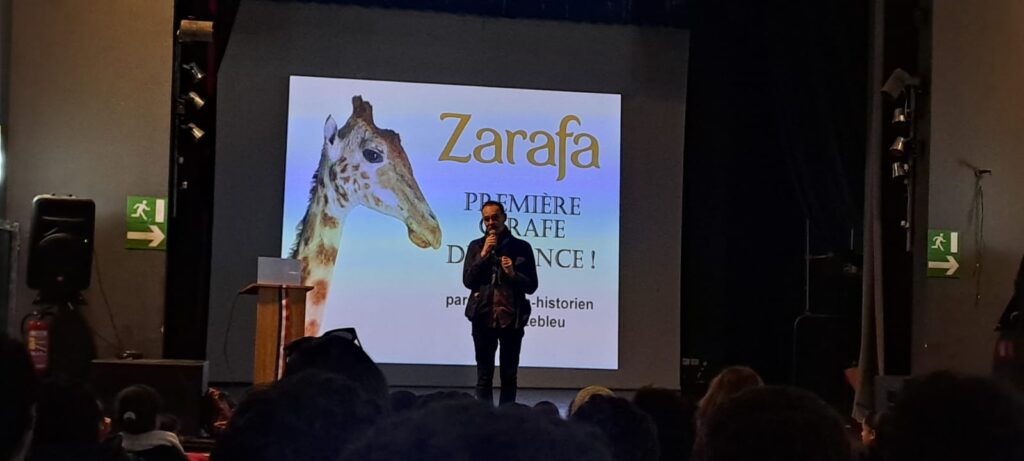 À l’occasion du bicentenaire du voyage de Zarafa, la première girafe arrivée en France, une journée entière a été consacrée à cette aventure exceptionnelle. L’atelier était animé par l’écrivain et historien Olivier Lebleu, spécialiste de cette histoire hors du commun.