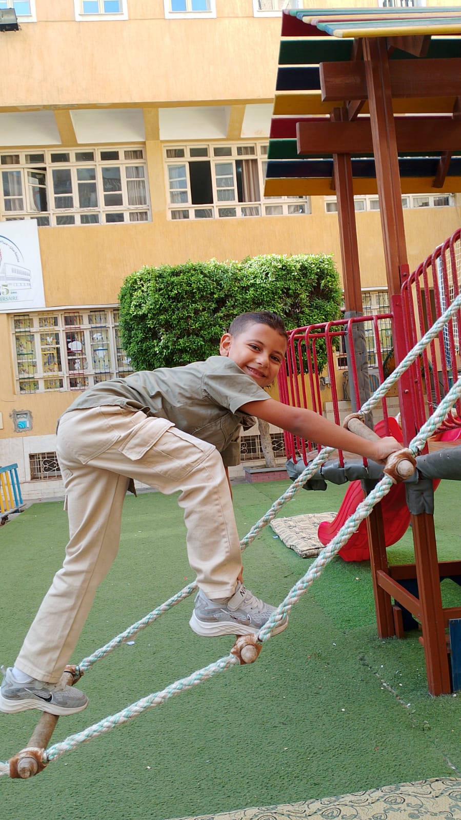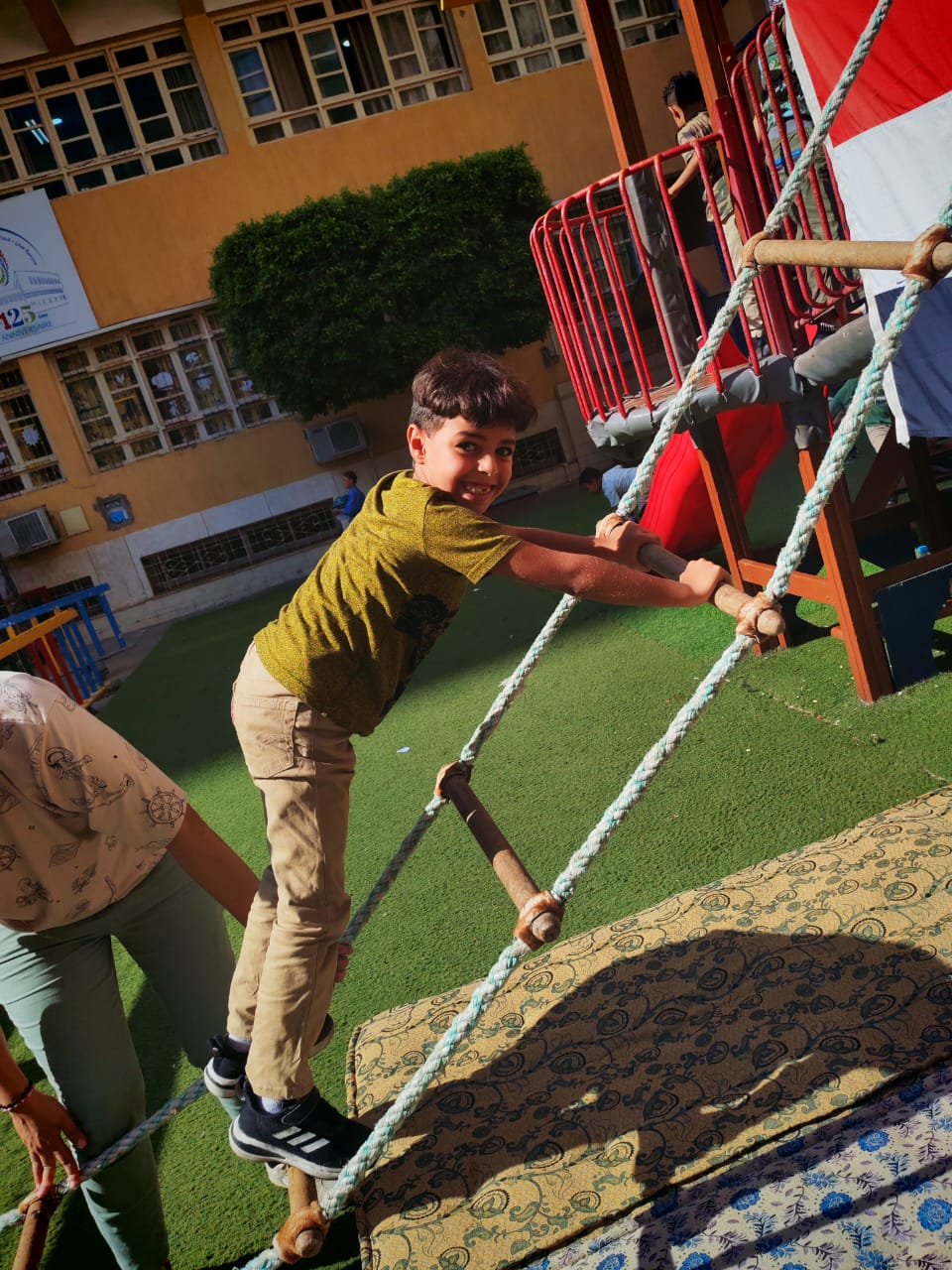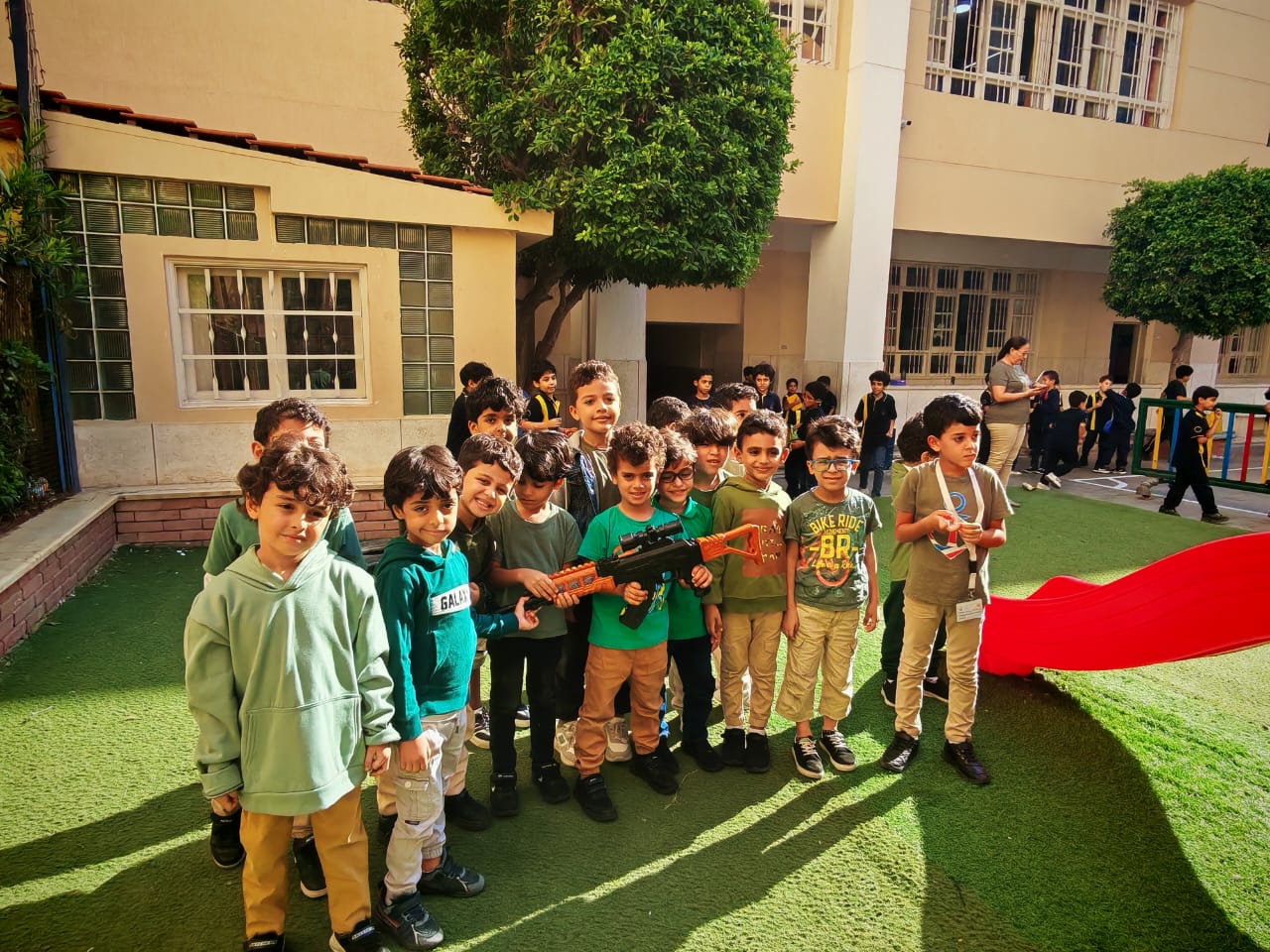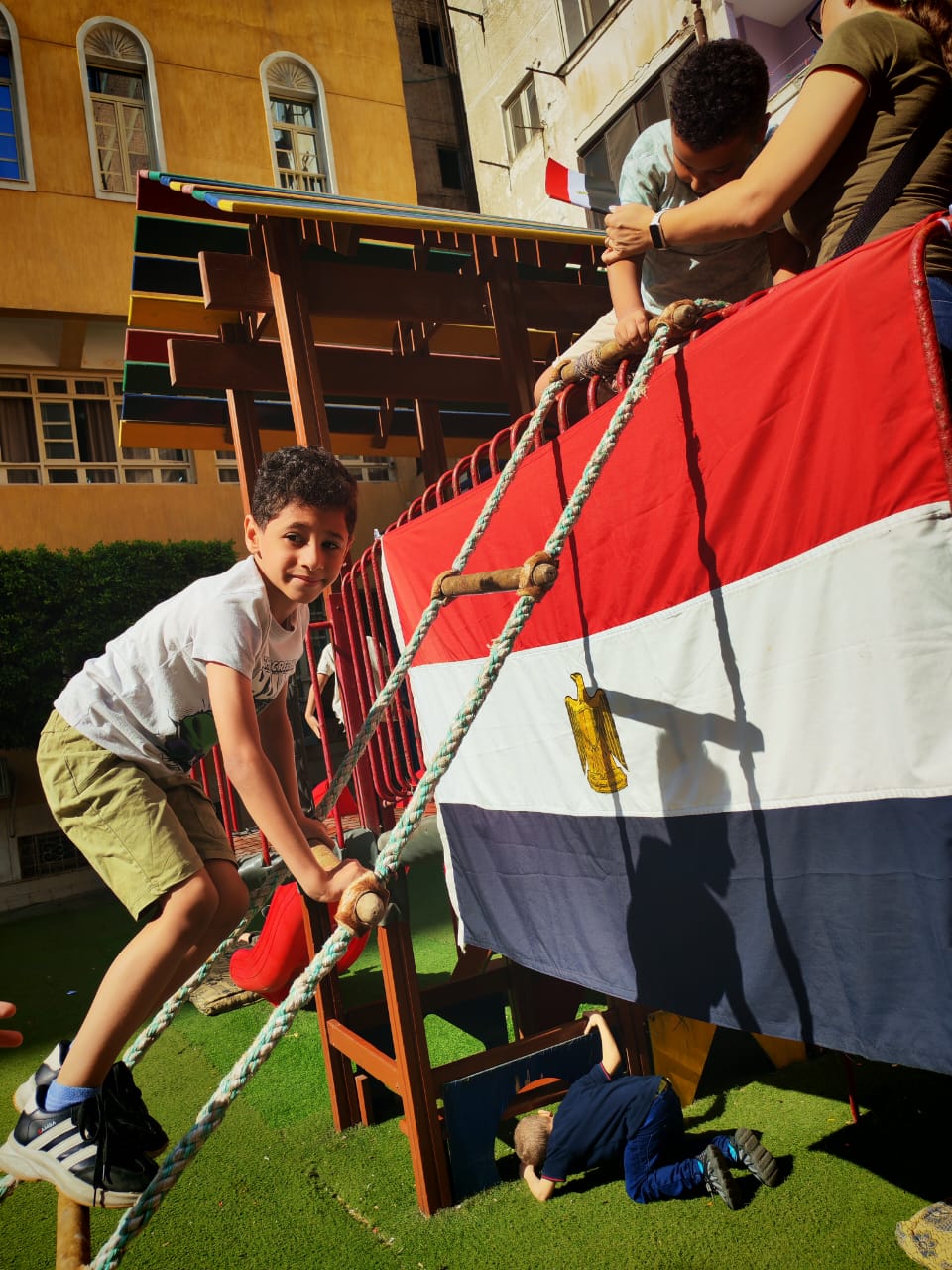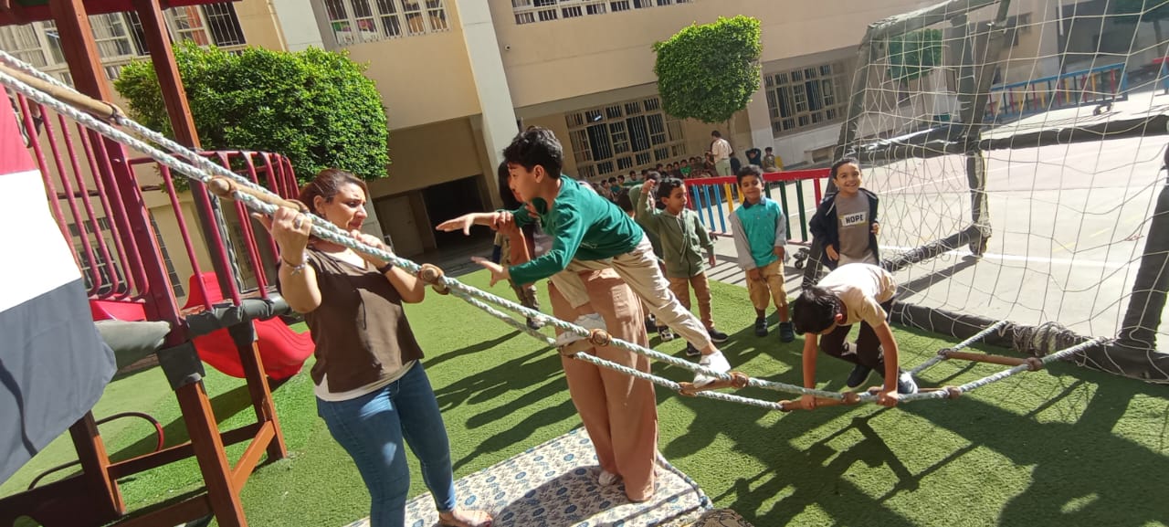 La maternelle a célébré hier la victoire du 6 octobre à travers plusieurs activités. Les enfants ont participé avec beaucoup d’enthousiasme à des jeux symbolisant le courage des soldats égyptiens, en grimpant, rampant et franchissant des obstacles, comme de vrais petits héros ! Cette journée leur a permis de découvrir de manière amusante et concrète l’esprit de vaillance et de victoire.