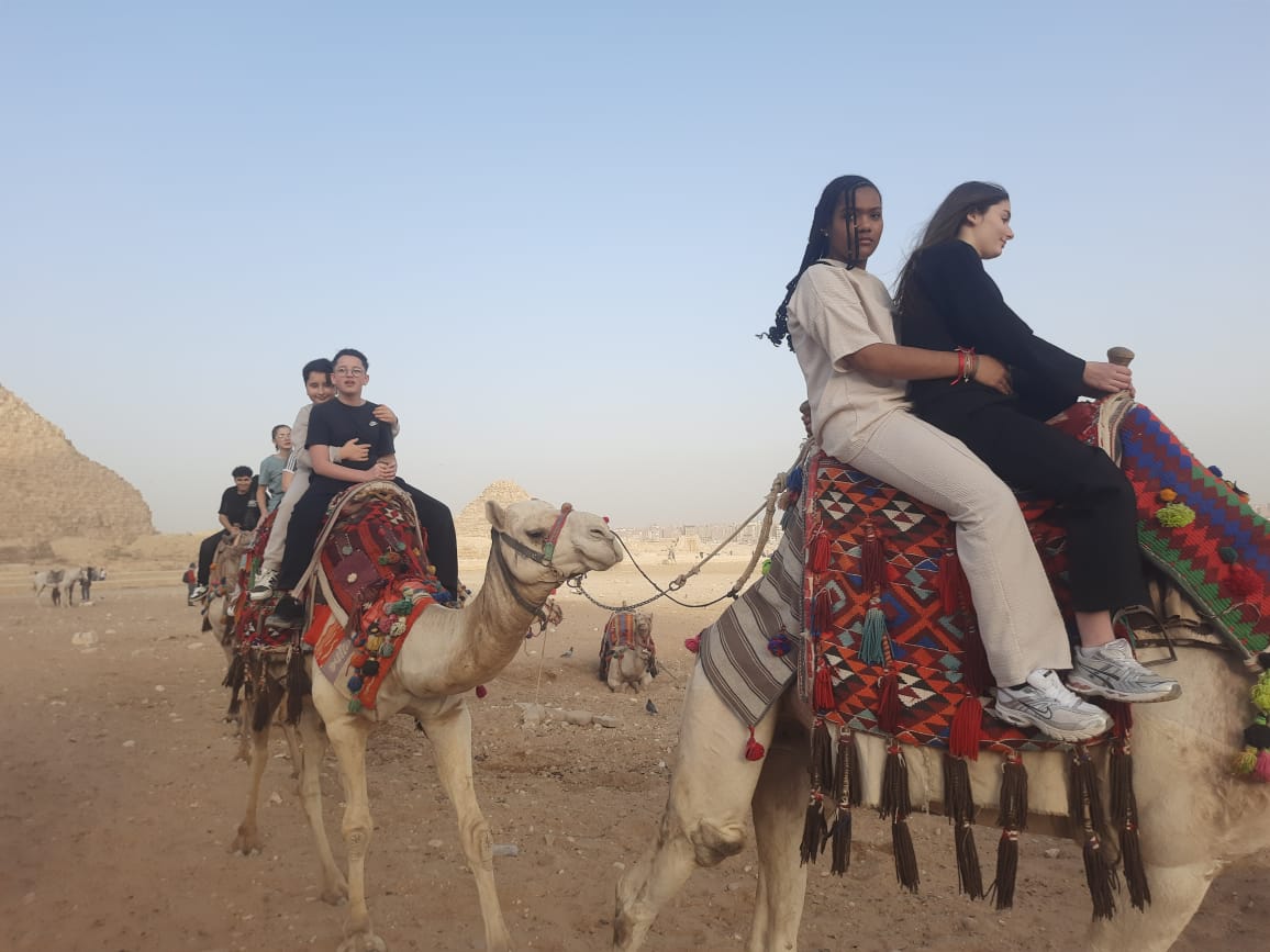 Dans le cadre de ce projet interculturel, les élèves de 3ᵉ préparatoire de l’École Saint-Gabriel vivent une semaine exceptionnelle aux côtés de leurs correspondants français du Collège Maurice Barrès de Verdun. Après avoir chaleureusement accueilli leurs invités, ils ont commencé cette aventure par la découverte des pyramides de Gizeh et du Sphinx, symboles emblématiques de l’histoire égyptienne.